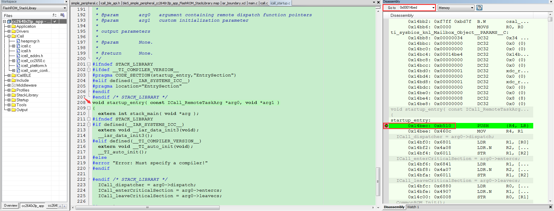 }FlashROM_StackLirary这里直接链接的编译在静态库中的startup_entry函数。//C:\ti\simplelink_cc2640r2_sdk_1_35_00_33\source\ti\ble5stack\icall\src\icall.c ICall_createRemoteTasks Line 540
